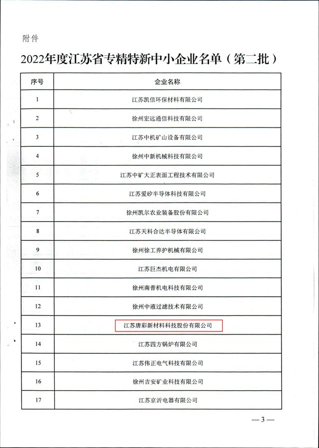 熱烈祝賀我司被江蘇省工業(yè)和信息化廳評定為“2022年度江蘇省專精特新中小企業(yè)”